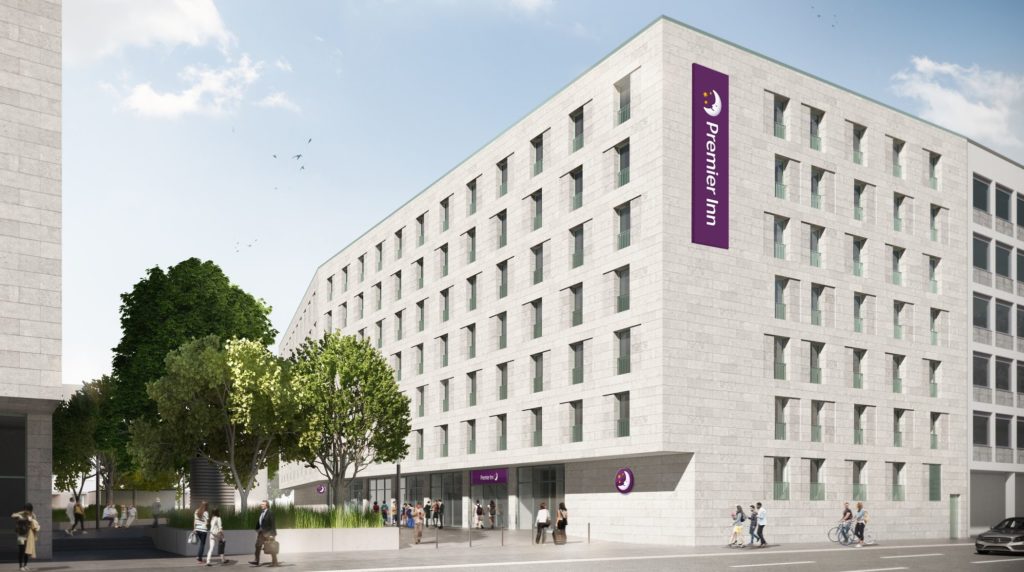 Die Hotelmarke Premier Inn gehört zum britischen Whitbread Konzern, der aktuell in Deutschland 30 Hotels betreibt. „Seitdem 2016 in Frankfurt an der Messe das allererste Premier Inn in Deutschland gemeinsam mit der GBI fertiggestellt wurde, sind beide Unternehmen ein eingespieltes Team“, betont Chris-Norman, Sauer Acquisitions Director Germany: „Daher konnte auch das Projekt in Nürnberg in kürzester Zeit von Unterzeichnung des Mietvertrages bis zum Baustart konzipiert und dabei alle Planungen an den Standort angepasst werden.“ Inzwischen hat sich die Marke inklusive der bereits betriebenen Häuser insgesamt 73 Standorte in mehr als 30 Großstädten und mit über 13.000 Zimmern gesichert. Sechs der Hotels sind gemeinsame Projektentwicklungen mit der GBI, neben Nürnberg und Frankfurt noch Häuser in Düsseldorf, Hamburg, Duisburg und Leipzig.