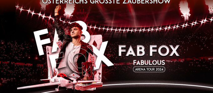 Österreichs Magier-Sensation FAB FOX tritt in die Fußstapfen großer Las Vegas-Künstler und präsentiert an 13 Abenden (19. Dezember 2024 bis 12. Jänner 2025) mit „Dream the Impossible“ Österreichs größte Zaubershow in der Wiener Marx Halle. Zwei fantastische Stunden lang lässt der erst 25-jährige Niederösterreicher die größten Träume der Menschheit wahr werden, reist in Zukunft und Vergangenheit, geht durch Wände aus Stahl, teleportiert echte Zuseher auf der Bühne und verspricht seinen Fans nichts weniger als „die Zaubershow ihres Lebens“. Mehr auf www.fabfox.at. Tickts ab 29,90 Euro unter auf www.events.tickethead.io