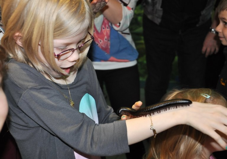Ganz Mutige bekommen die Tiere sogar auf die Hand gesetzt, damit sie das „große Krabbeln“ auf der eigenen Haut spüren können – eben ein wenig „Dschungelcamp“ für alle.