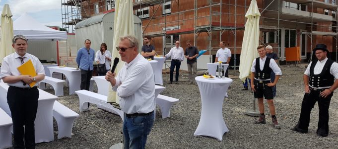 Gudensberg/Kassel (pts006/27.07.2020/08:20) – Die letzte Bauphase für 44 geförderte Wohnungen im nordhessischen Gudensberg mit den Adressen Am Ringwall 29 und 31 hat begonnen. Der Immobilien-Projektentwickler Frankonia feierte am Freitag im Rahmen des Richtfestes in der Steinzeitsiedlung den bisher erfolgreichen Fortschritt der Arbeiten. Im Frühjahr kommenden Jahres werden die Mieter in die beiden drei-geschossigen Gebäude einziehen. „Wir freuen uns, dass wir trotz der besonderen Herausforderung der Corona-Pandemie so gut im Zeitplan sind und der dringend benötigte preisgünstige Wohnraum schon bald zur Verfügung steht“, sagt Engelbert Maus, Geschäftsführer der Frankonia Vermögensverwaltungs- und Beteiligungsgesellschaft.