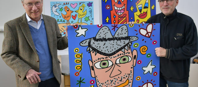 „Ohne die Unterstützung lokaler Unternehmen und Sponsoren wäre auch dieser dritte Adventskalender in Folge nicht möglich gewesen“, betont Dr. Rüdiger Liebs, der stellvertretende Vorsitzende des Kuratoriums der Bürgerstiftung. Und unisono mit Gerhard Hofmann, dem künstlerischen Leiter des Adventskalenders, lobt er den Tübinger Kunstgroßhändler Art 28: „Deren Geschäftsführer Bernhard Feil war von unserem Rizzi-Kalender-Projekt begeistert. Wie auch schon im Vorjahr beim Kalender mit dem Art-28-Künstler Janosch. Herrn Feils Begeisterung und Großzügigkeit haben überhaupt erst ermöglicht, dass in diesen Adventstagen Neustadt a.d.W. zu einer Rizzi-Stadt wird.“
